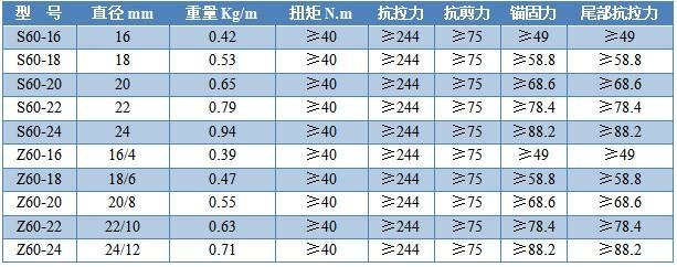 規(guī)格(mm) 桿體抗拉力(kn) 桿體抗拉強(qiáng)度(mpa) 連接部分及螺紋承載力(kn)