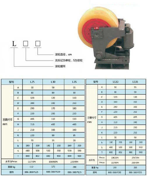 - 滾輪罐耳原理新型滾輪罐耳的工作原理:滾輪通過軸與擺架連接,擺架通過銷軸與支座及緩沖器與復合調(diào)整器連接,緩沖器與復合調(diào)整器4通過銷軸與擺架及支座連接,緩沖器與復合調(diào)整器由殼體Ⅰ和殼體Ⅱ、碟形彈簧、彈簧予緊力調(diào)整螺母、導桿共同組成,通過轉(zhuǎn)動殼體Ⅱ可調(diào)整懸掛長度,從而調(diào)整滾輪位置,用鐵絲可鎖緊殼體Ⅰ、Ⅱ;調(diào)整螺母、調(diào)整工具孔用于插入棒狀工具以使螺紋相對轉(zhuǎn)動;懸掛孔用于與擺架和支座連接。滾輪罐耳以液壓緩沖器取代傳統(tǒng)的緩沖結(jié)構(gòu),承載能力大、運行平穩(wěn)、可靠性高、壽命長、調(diào)整維修方便。 滾輪罐耳底座等零部件采用新型材料,整體結(jié)構(gòu)強度更高,抗沖擊性強。 緩沖器復位壓力小,可有效地避免滾輪與罐道產(chǎn)生異常碰撞。通過杠桿傳遞到減震筒上,同時起到導向、緩沖與穩(wěn)定作用。罐道與罐耳由滑動摩擦變?yōu)闈L動摩擦,因此減少了動力消耗,降低了噪音,罐道和罐耳的磨損也大大降低。從而,提高了罐道和罐耳的使用壽命。滾輪罐耳標準【滾輪罐耳國標標準】MT236-2011(國標):本標準規(guī)定了矩形鋼雄道滾輪罐耳(以下簡稱滾輪罐耳) 的產(chǎn)品分類、技術(shù)要求、試驗方法、檢驗 規(guī)則、標志、包裝、運輸和貯存。 滾輪罐耳本標準適用于立井提升容器(箕斗、罐籠、平衡錘)沿矩形鋼罐道導向的滾輪罐耳。發(fā)布日期:2011-04-12 實施日期:2011-09-01 代替標準:MT236-1991國家安全生產(chǎn)監(jiān)督管理總局公告2011年第13號引用標準:GB/T 700;GB/T 985.1;GB/T 1184-1996;GB/T 1804-2000;GB/T 9286;GB/T 10111;JB/T 5000.3-2007;JB/T 5000.10;JB/T 5000.12-2007;MT/T 154.1;《煤礦安全規(guī)程》 國家安全生產(chǎn)監(jiān)管理總局、國家煤礦監(jiān)察局【滾輪罐耳現(xiàn)場評審必須具備的引用標準】GB/T1972 碟形彈簧GB/T1804 一般公差 未注公差的線性和角度尺寸的公差GB/T1184 形狀和位置公差 未注公差值MT113 煤礦井下用聚合物制品阻燃抗靜電性通用試驗方法和判定規(guī)則熱銷型號:L25滾輪罐耳L25滾輪罐耳-技術(shù)參數(shù):型號: L25預緊力(kg): 300水平最大緩沖力(KN):12緩沖行程(mm): 13使用提升速度(m/s): 8-12L25滾輪罐耳-主要特點:L25滾輪罐耳輪軸采用橡膠密封語機械密封相結(jié)合的組合密封方式,膠圈采用高耐磨材料,安全可靠,壽命長。1.支架擺動銷軸裝有高分子耐磨軸套,使用中不產(chǎn)生松動現(xiàn)象。2.緩沖裝置采用符合彈性體緩沖結(jié)構(gòu),性能穩(wěn)定,免維護。3.可用緩沖裝置來方便的調(diào)整滾輪與罐道間的位置。4.表面防范采用鍍鋅刷漆新工藝,防腐防銹性能好。滾輪罐耳由中間布置一個,左右側(cè)各一個組成一組。滾輪罐耳可根據(jù)用戶要求進行設(shè)計。滾輪罐耳-規(guī)格型號滾輪罐耳分為L系列單輪滾輪罐耳和LS雙輪滾輪罐耳。L系列單輪滾輪罐耳型號有:L25,L30,L35,L40,L45;LS系列雙輪滾輪罐耳型號有:LS30,LS35,LS40,LS45。