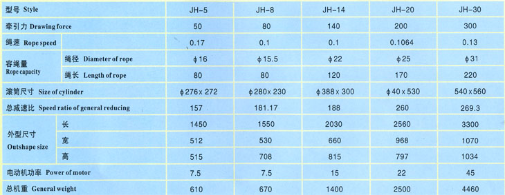 JH-5回柱礦用絞車 主要技術(shù)參數(shù)