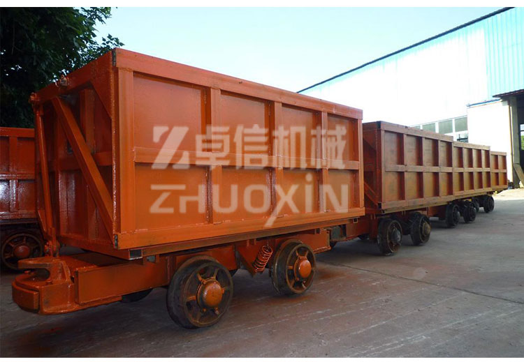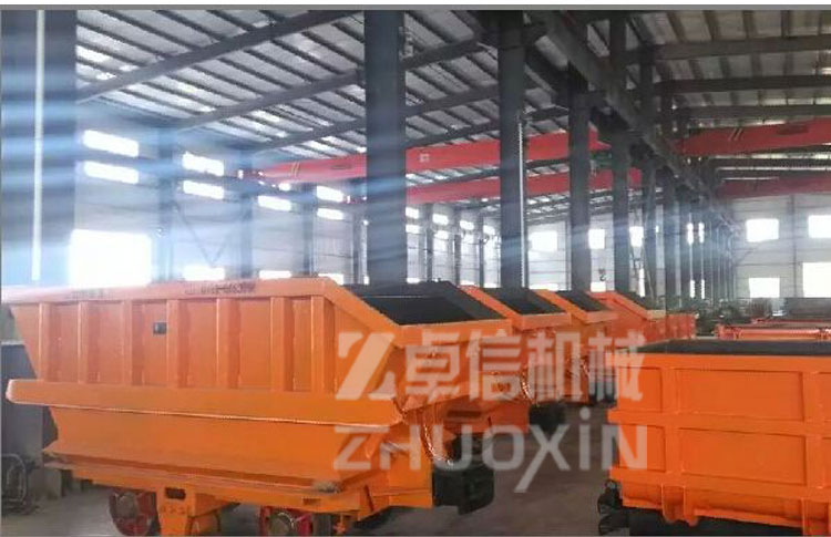 - 側(cè)卸式礦車主要適用于冶金、礦山巷道、煤礦、鐵路、公路遂道、水下涵洞、引水洞、導(dǎo)流洞、涵洞等隧道井巷工程掘進(jìn)、施工、配套簡單、高效率出渣運(yùn)輸設(shè)備。側(cè)卸式礦車由牽引車、絞車帶動,可與鑿巖鉆、立爪裝巖機(jī)和礦石溜開閘門放料系統(tǒng)配套結(jié)合裝料,礦石塊度不超過600毫米,根據(jù)礦車的負(fù)載容積,裝料后經(jīng)牽引動力引至(運(yùn)行速度不超過1m/秒)專用曲軌卸料器。當(dāng)車箱翻至水平成最大卸料角度時,車門也開到最大程序。這時礦車卸料以全部完成。返回時,礦車通過曲軌門又自動關(guān)閉到位。側(cè)卸式礦車、曲軌側(cè)卸式礦車、側(cè)翻式礦車容量有2立方、3立方、4立方、6立方、8立方的容積。側(cè)卸式礦車是一種高效、自卸載的運(yùn)輸設(shè)備,本身無能力,需與牽引機(jī)車或提升絞車配套使用。該車適用于礦山、隧道、工程建設(shè)等部門的坑道、室內(nèi)和露天軌道運(yùn)輸作業(yè),軌距為600mm、762mm、900mm三種,供用戶選擇。該車適宜裝載塊度在500mm以上的礦巖和砂土,裝載塊狀物料時,其自由跌落高度應(yīng)小于1m(距車箱頂面)。側(cè)卸式礦車是代替最古老式的翻斗式礦車的礦山運(yùn)輸工具,它綜合了它的簡單又方便,加大了它的貯存量,重量輕不笨重交靈活,簡單也就毛病少,特點是能自卸料。由軌道牽引機(jī)車或卷揚(yáng)機(jī)牽引行走,只能在卸載處做好的曲軌卸載平臺上,向設(shè)定的一面卸載。在車廂的一側(cè)用較軸與車架相連,另一側(cè)箱門上裝有卸載輥輪。卸載時,當(dāng)輥輪沿曲軌斜坡過渡裝置在卸載曲軌上坡段的上行,致使車廂傾斜,活動側(cè)門繞銷軸轉(zhuǎn)動被拉開而開始卸載。當(dāng)輥輪沿傾斜卸載曲軌下坡運(yùn)行,車廂靠自生重量自動下降復(fù)位到關(guān)閉側(cè)門。要注意的是當(dāng)側(cè)曲軌側(cè)卸式礦車從井底提升到卸載平臺時,提升卷揚(yáng)機(jī)要放慢速度上斜坡卸載平臺,使其平穩(wěn)卸載。中煤集團(tuán)生產(chǎn)的單側(cè)曲軌側(cè)卸式礦車的優(yōu)點是比翻斗式礦車和固定式礦車容積更大,自動平穩(wěn)卸載,由于這種卸載方式自身的特點,曲軌卸載空間小,一般只要5.2米長,卸載傾角 仍可達(dá)到55度,有效的節(jié)省了井巷的開拓空間和縮小了硐室尺寸。卸載距離短,煤倉和車場的掘進(jìn)體積只有其它礦車的三分之一;由于卸載曲軌是對稱的,可實現(xiàn)側(cè)卸式礦車的雙向進(jìn)行卸載。側(cè)卸式礦車適用范圍側(cè)卸式礦車適用于井下或地面開采的金屬礦山(或礦石性質(zhì)及開采方式與其相類似的其他礦山)沿地下巷道及地面工作場地運(yùn)輸?shù)V石或其他物類。本礦車與其它底卸式礦車相比,具有運(yùn)行平穩(wěn),對電機(jī)車和牽引車沖擊力小,因此,可延長其使用壽命。該車堅固耐用,維修方便,可雙向卸載,卸載速度高等。側(cè)卸式礦車結(jié)構(gòu)組成側(cè)卸式礦車有以下部件組成:1.車箱、2.車底架、3.輪軸、4.卸載輪、5.支撐彈簧、6.緩沖橡膠彈簧與碰頭等組成。其中車箱與車底架的聯(lián)接采用鉸鏈形式,使礦車在過卸載站時能開啟一定的角度以便礦石能順利卸下。31、車箱的前、后端板和側(cè)板均采用12mm厚的16Mn板焊接而成,在車箱四周外側(cè)采用槽形鋼板加固;翼板分別焊接在左、右側(cè)板上,上方用角鋼焊接成口字形,而且角鋼上方 和槽形鋼板相連,以便能使車箱在極端惡劣的工作環(huán)境下也不致于損壞。2、車底架。底板采用25mm厚的鋼板,在底板下面用角鋼和鋼板焊接,使底板足以能經(jīng)受住裝礦時礦石對底板的沖擊力。3、輪軸。輪軸由車軸、車輪和橡膠彈簧座組成。4、卸載輪。礦車卸礦時用,當(dāng)?shù)V車過卸載站時,卸載輪便開始工作,它沿曲軌滾動從而使礦車底板打開,卸完礦石后再使底板閉合,重新回復(fù)到裝礦狀態(tài)。5、緩沖橡膠彈簧與碰頭。緩沖與碰頭安裝在礦車兩頭,主要由緩沖橡膠彈簧、碰頭、插銷和單環(huán)鏈組成。它能使礦車之間緩和并削減沖擊力,延長車輛使用壽命。6、支撐彈簧。側(cè)卸式礦車相關(guān)參數(shù)容積:1.6m3軌距:600軸距:800C輪徑:350D牽引高度:320h額定牽引力:60KN卸載角:≥42°裝載量:4000KG外型尺寸:(長*寬*高)2500*1200*1300。側(cè)卸式礦車售后服務(wù)及交付說明1、側(cè)卸式礦車性價比說明:同產(chǎn)品質(zhì)量條件下,我公司不以降低性能、更改產(chǎn)品零部件為代價,給出最低最實在的價格。(可根據(jù)客戶要求進(jìn)行產(chǎn)品的生產(chǎn)配置)2、側(cè)卸式礦車交貨說明:按供貨期交貨,若有特殊情況,需提前交貨的,我公司在有限的范圍內(nèi)將會組織人員加大生產(chǎn)力度、實行生產(chǎn),安裝,調(diào)試,包裝等工藝,力求滿足貴公司要求.3.側(cè)卸式礦車售后服務(wù)范圍:產(chǎn)品保修期為1年,在保修期內(nèi)產(chǎn)品屬質(zhì)量問題的我公司給予最快捷的維修,無任何費用,在保修期外需要更換零部件的,我公司只收取成本.山東卓信機(jī)械(官網(wǎng)http://www.jnzhuoxin.com)秉承山東人的豪爽與實誠,誠邀各位專家、領(lǐng)導(dǎo)來我公司考察、指導(dǎo)、賜教并期盼與您真誠合作,“追求卓越”永遠(yuǎn)是我們的主題,我們將勵精圖治,再創(chuàng)高效,力爭以先進(jìn)的技術(shù),優(yōu)良的產(c