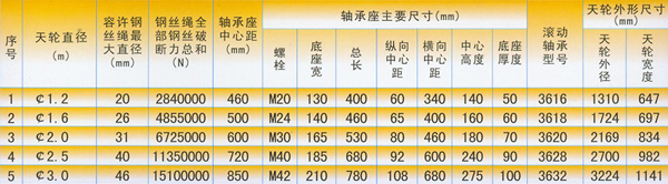 3)提升天輪采用繩輪與軸承座可調(diào)型式,使用時根據(jù)實際情況進行選用,還可根據(jù)情況,另行組合設計,可不受規(guī)定品種和可調(diào)型式的限制,但訂貨時應加以說明。