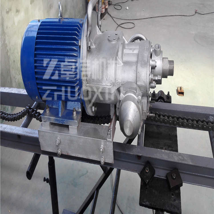 為了延長鉆頭的使用壽命及改善操作者的勞動條件,采用水排粉即濕式鉆孔,在鉆孔作業(yè)中,只需操縱手輪,電鉆就可自行推進和快速退架。