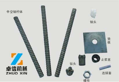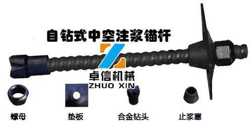 中空注漿錨桿由合金桿體、止?jié){塞、墊板、螺母和錨頭組成。